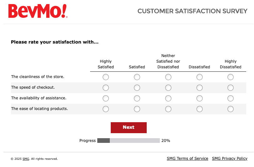 By completing the survey, you play a role in shaping future BevMo! experiences.